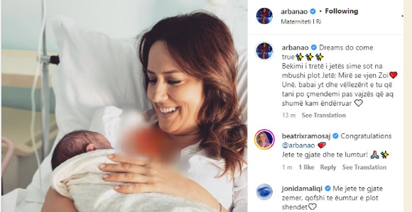 Më 1 shtator Arbana Osmani njofton ardhjen në jetë të vajzë së saj, duke zbuluar edhe emrin: Zoi.