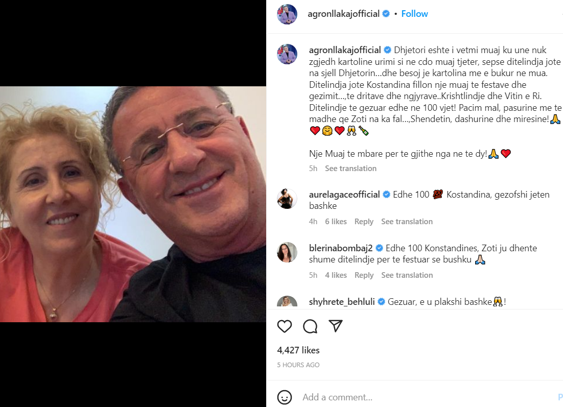 Kjo ditë është shumë e veçantë për aktorin e njohur, Agron Llakaj. Bashkëshortja e tij, Kostandina feston ditëlindjen dhe padyshim ai nuk kishte se si mos t’i bënte një urim publikisht.