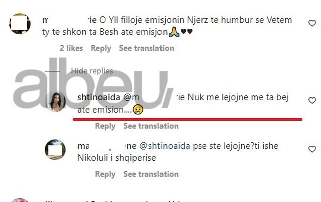 “Nuk më lejojnë më ta bëj atë emision”, përgjigjet Aida Shtino.