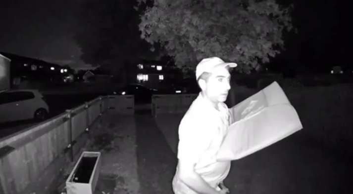 Me një kuti pizze në dorë, 39-vjeçari i ka rënë ziles së banesës por askush nuk i është përgjigjur. Por pak sekonda më vonë ai ka nxjerë diçka nga xhepi dhe ka arritur të hapi derën e vilës.