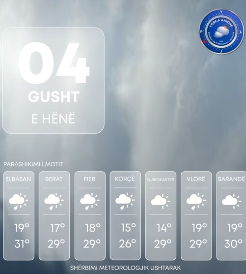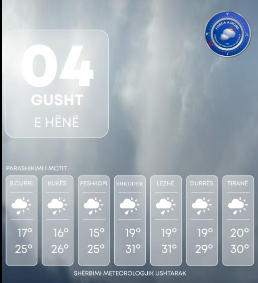 Ditën e hënë (4 gusht) vendi ynë do të jetë në ndikimin e kushteve atmosferike të paqëndrueshme.