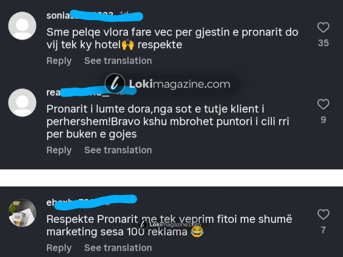 Madje, në faqet zyrtare të bizneseve të tij janë shtuar ndjeshëm ndjekësit dhe komentet pozitive. Përdorues të shumtë kanë premtuar se do të frekuentojnë lokalet e tij dhe do t’ia rekomandojnë të tjerëve, si formë vlerësimi për mbrojtjen që i bëri të riut që po dhunohej.