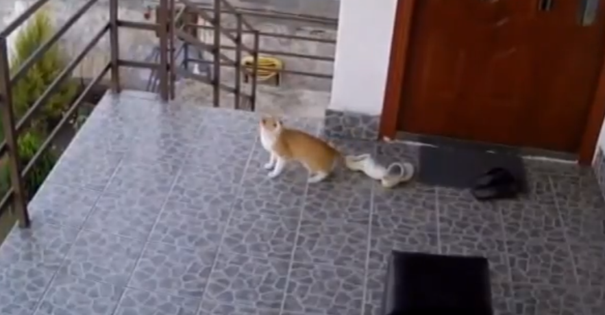Nje video e postuar me pare tregon se si macja ka ndjer termetin dhe leviz nga qetesia qe ishte.