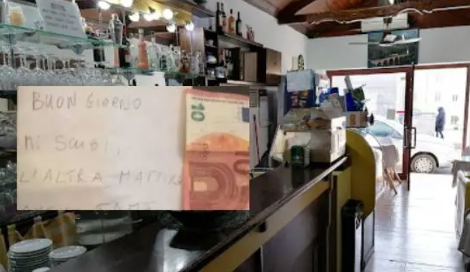 “Përshëndetje, më falni, mëngjesin e kaluar isha i uritur dhe nuk kisha para. Faleminderit”, ky është teksti i shënimit që Maurizio Milani, pronari i kafenesë në Pistoia gjeti jashtë derës disa ditë më parë. Së bashku me mesazhin ishin edhe 10 euro, ekuivalenti i parave të dhjetë brioshëve që ‘hajduti’ i kishte vjedhur një ditë më parë.